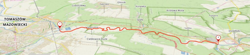 Trasa ze Spały do Inowłodza (przystań www.NaWodzie.eu) to trasa dedykowana dla rodzin z dziećmi, seniorów oraz niedzielnych kajakarzy. Podczas 1,5 godzinnego spływu będziecie mogli podziwiać przepiękny krajobraz Pilicy, leśny, dziki. Rzeka zaczyna się wypłycać rozlewa się tworząc przepiękne wysepki oraz malowniczy krajobraz. Podczas spływu będziecie musieli wybrać swoją linie spływu. Jeżeli źle zdecydujesz z której strony wyspy płynąć będziesz musiał przeciągać swój kajak po mieliznach. Dla tych bardziej zaawansowanych kajakarzy wybranie optymalnej lini spływu to nie problem i całą trasę można pokonać bez wysiadania z kajaka.
